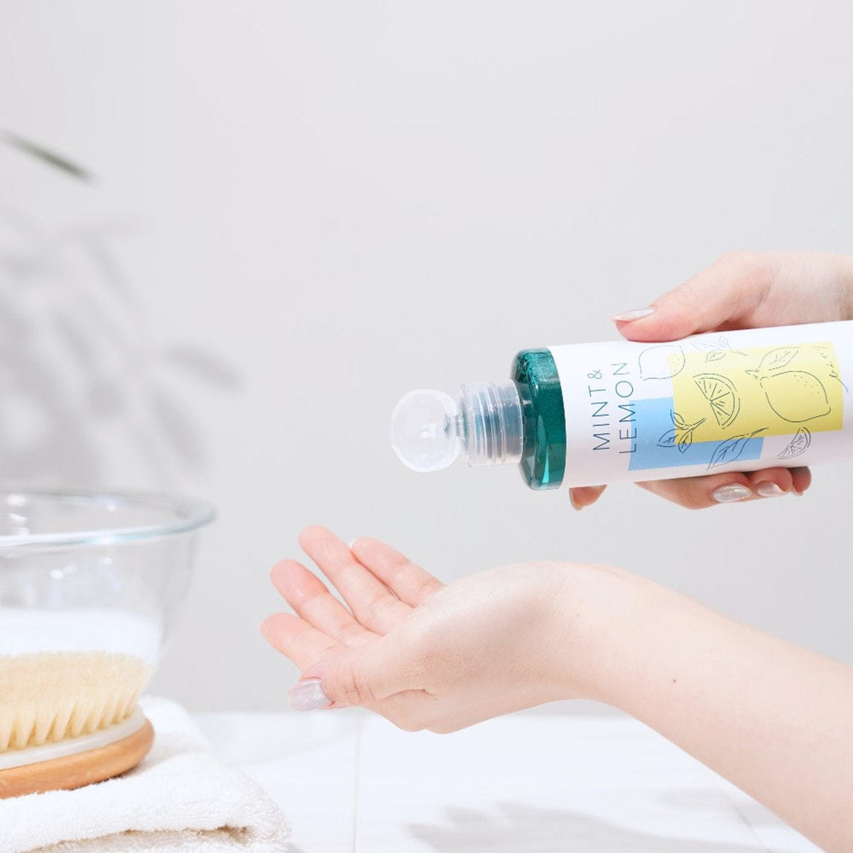 手のひら、またはお湯を含ませたタオルやスポンジ等に適量取り、泡立ててから洗い、よくすすいでください。